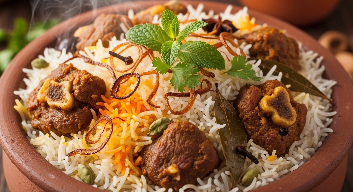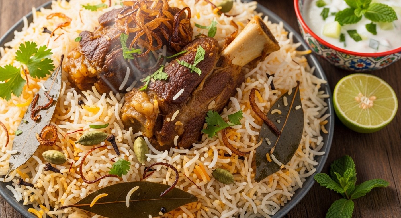 Succulent mutton slow-cooked with premium basmati rice and authentic seasonings
