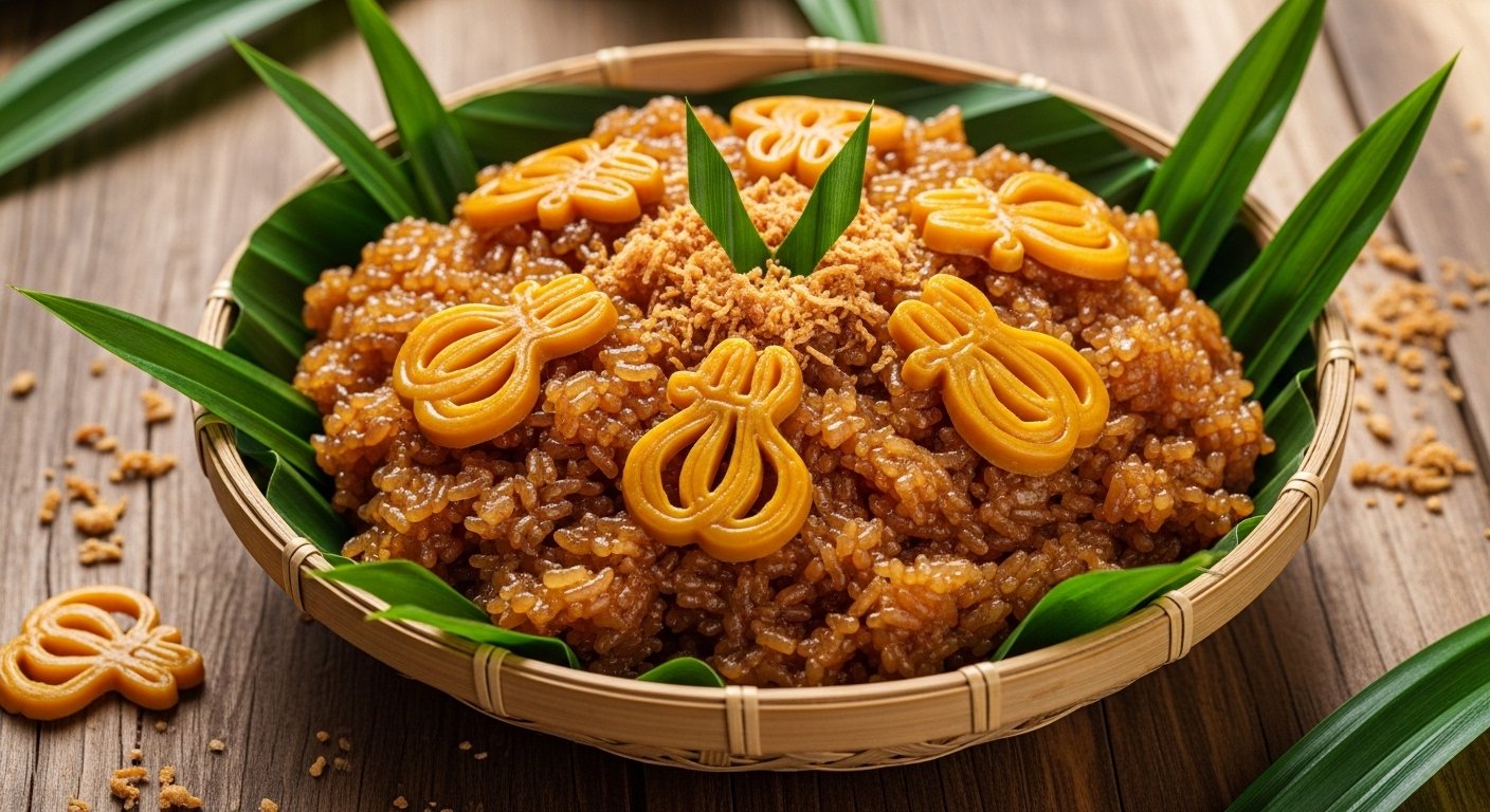 A delightful blend of sweet rice with aromatic flavors and colorful garnishes